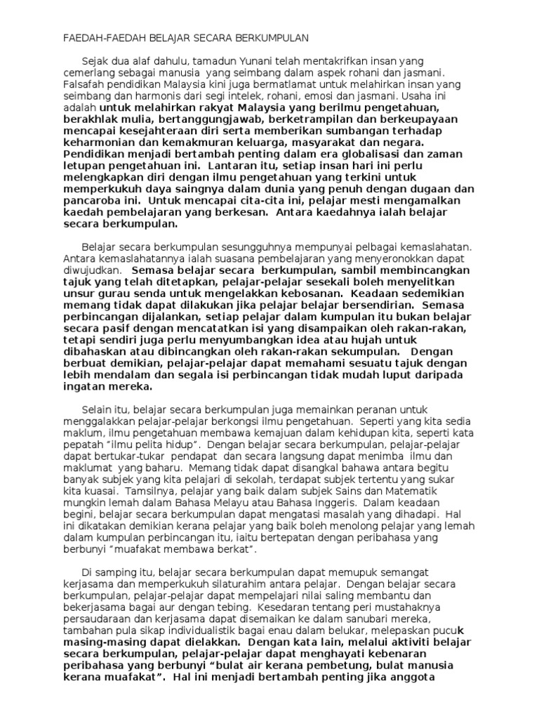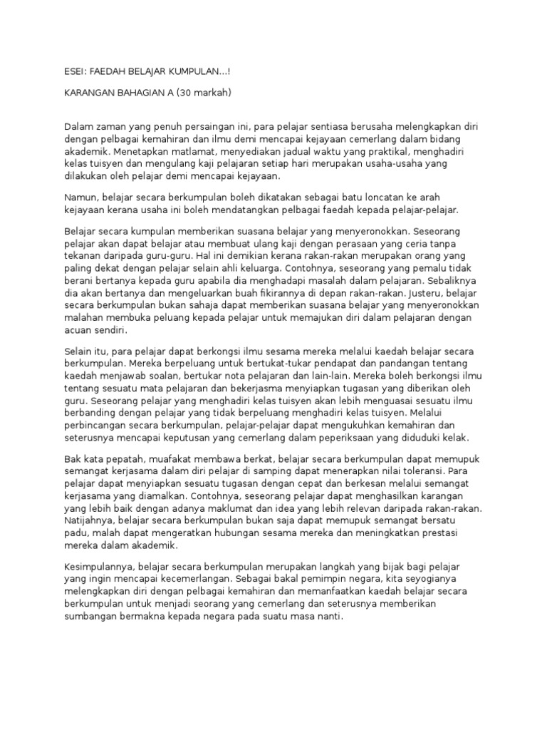 Contoh Karangan Faedah Belajar Secara Berkumpulan Contoh Otosection